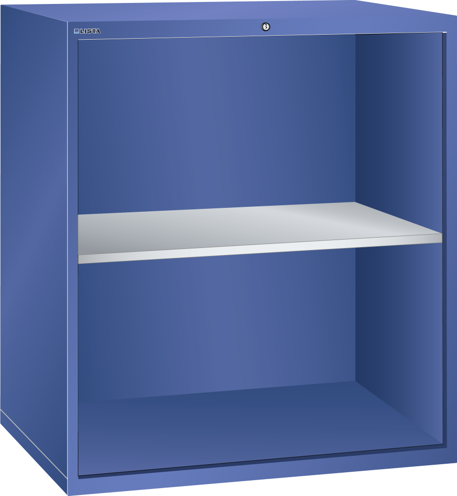Armoires à dessins : construction en tôle d'acier soudée de qualité supérieure. Bâti : les éléments porteurs verticaux avec une trame de 25 mm permettent de monter des tiroirs de hauteurs différentes, avec blocage individuel des tiroirs comme sécurité anti-basculement. Modèle de base des armoires sans fermeture ; système distinct de fermeture KEY Lock, à fermeture différente. Couleur : selon le nuancier de couleurs.