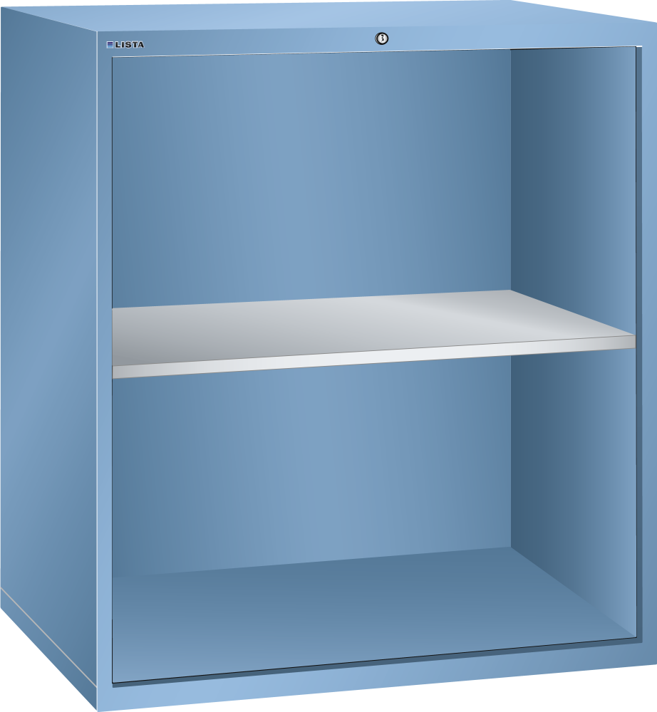Armoires à dessins : construction en tôle d'acier soudée de qualité supérieure. Bâti : les éléments porteurs verticaux avec une trame de 25 mm permettent de monter des tiroirs de hauteurs différentes, avec blocage individuel des tiroirs comme sécurité anti-basculement. Modèle de base des armoires sans fermeture ; système distinct de fermeture KEY Lock, à fermeture différente. Couleur : selon le nuancier de couleurs.