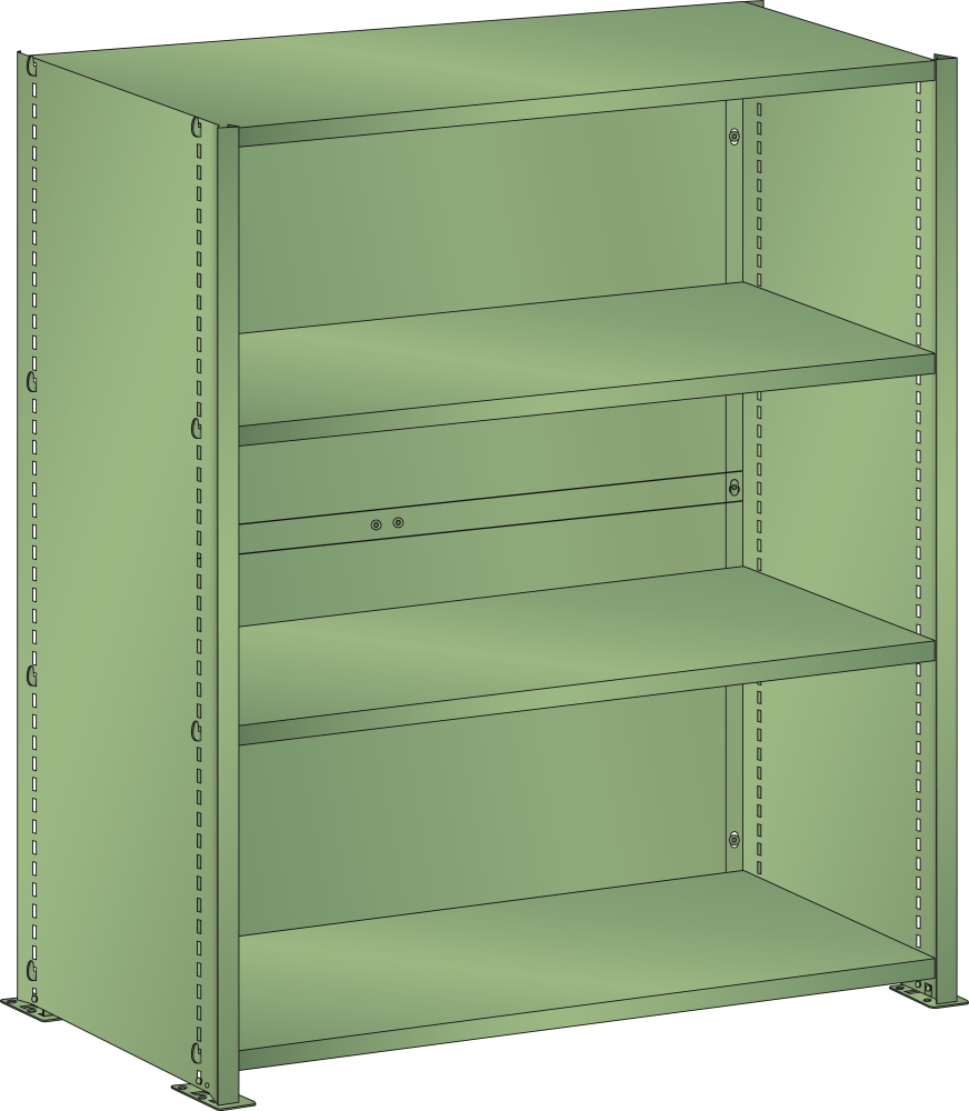 Rayons lisses ou à fentes, capacité de charge max. 80, 160, 220, 280 et 400 kg : Support de rayon inclus. Épaisseur du fond 25 mm. Exécution : tôle d'acier. Couleur : selon planche des couleurs ou galvanisé.