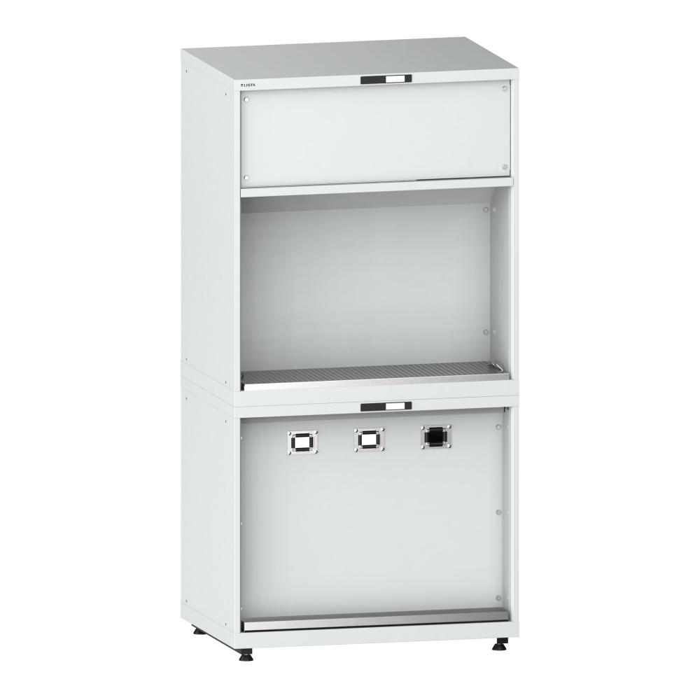 La structure intérieure intelligente permet d’accueillir des grands enrouleurs de flexibles ainsi que de pistolets à commande manuelle allongés. Les pupitres peuvent être équipés d’une unité de commande individuelle dans l’armoire superposée.