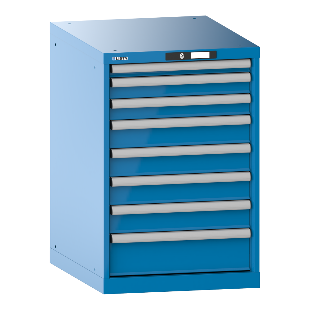 Armadio a cassetti 27x36E (LxPxA) 564x725x850mm 8 cassetti (1x50/2x75/4x100/1x150) 75kg KEY Lock Blu luce RAL 5012