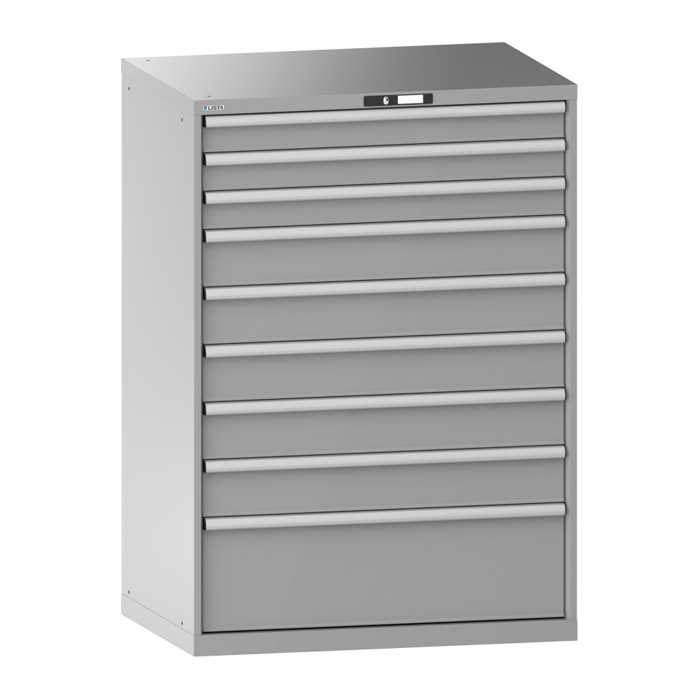 Armadio a cassetti 54x36E (LxPxA) 1023x725x1450mm 9 cassetti (3x100/5x150/1x300) 200kg KEY Lock Alluminio brillante RAL 9006