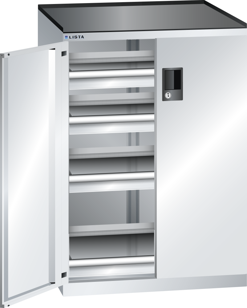 Armadio a cassetti con ante a battente 36x27E (LxPxA) 717x600x1020mm 4 cassetti (200kg) RFID Lock Grigio chiaro NCS S 2000-N