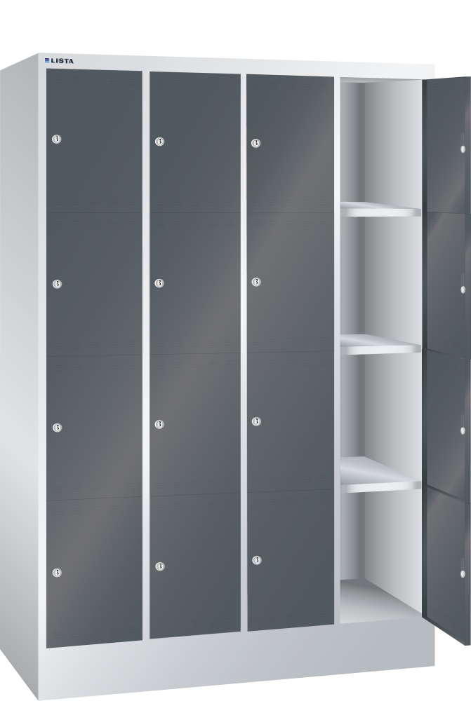 Armadio a scomparti (LxPxA) 1200x500x1795mm 4x4 scomparti KEY Lock Grigio luce RAL 7035 / Grigio ardesia RAL 7015