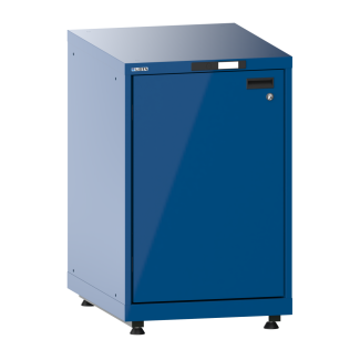 Armadio con porte battente 27x36E (LxPxA) 564x725x895-940mm a sinistra, 1 ripiani spostabili a set di piedi di livellamento per pannelli (4 x piedi, 45-90mm) Blu segnale RAL 5005