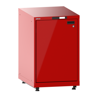 Armadio con porte battente 27x36E (LxPxA) 564x725x895-940mm a sinistra, 1 ripiani spostabili a set di piedi di livellamento per pannelli (4 x piedi, 45-90mm) Rosso fuoco RAL 3000