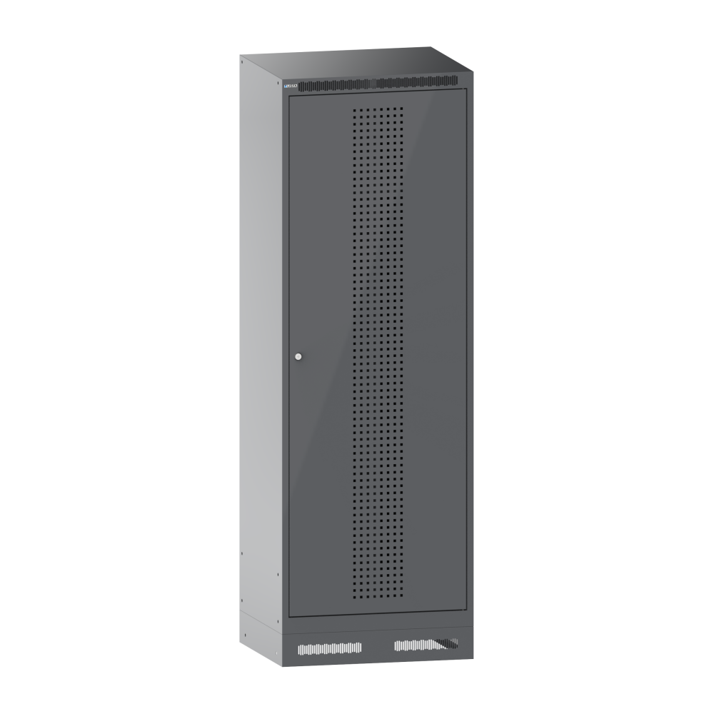 Armadio guardaroba (LxPxA) 600x500x1800mm 2 scomparti con zoccolo, anta forato, KEY Lock Grigio luce RAL 7035 / Grigio metallico NCS S 6502-B
