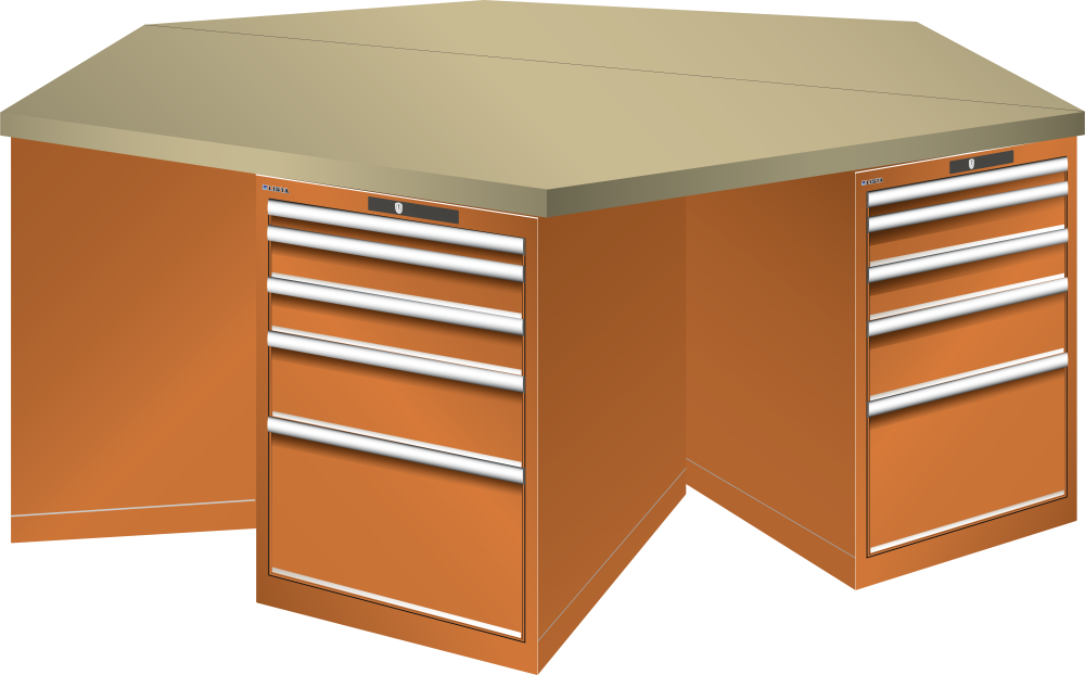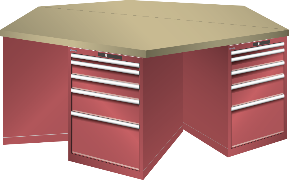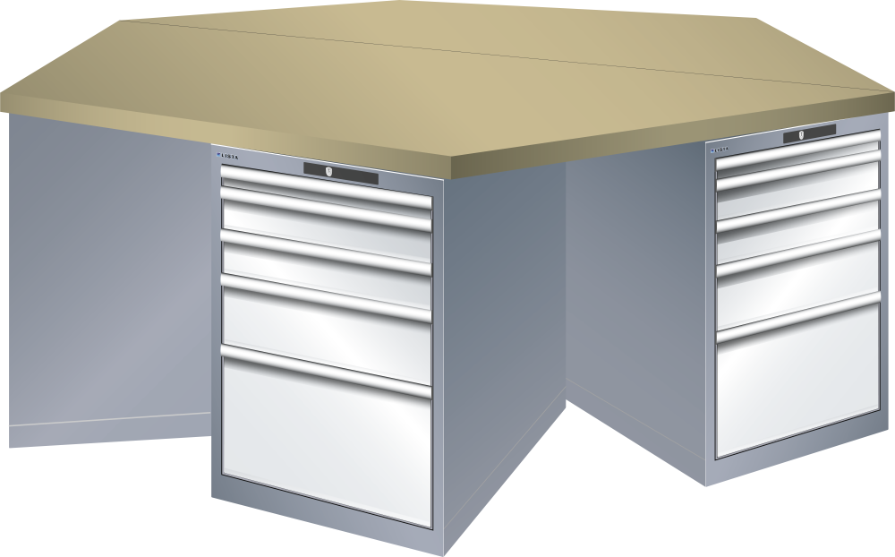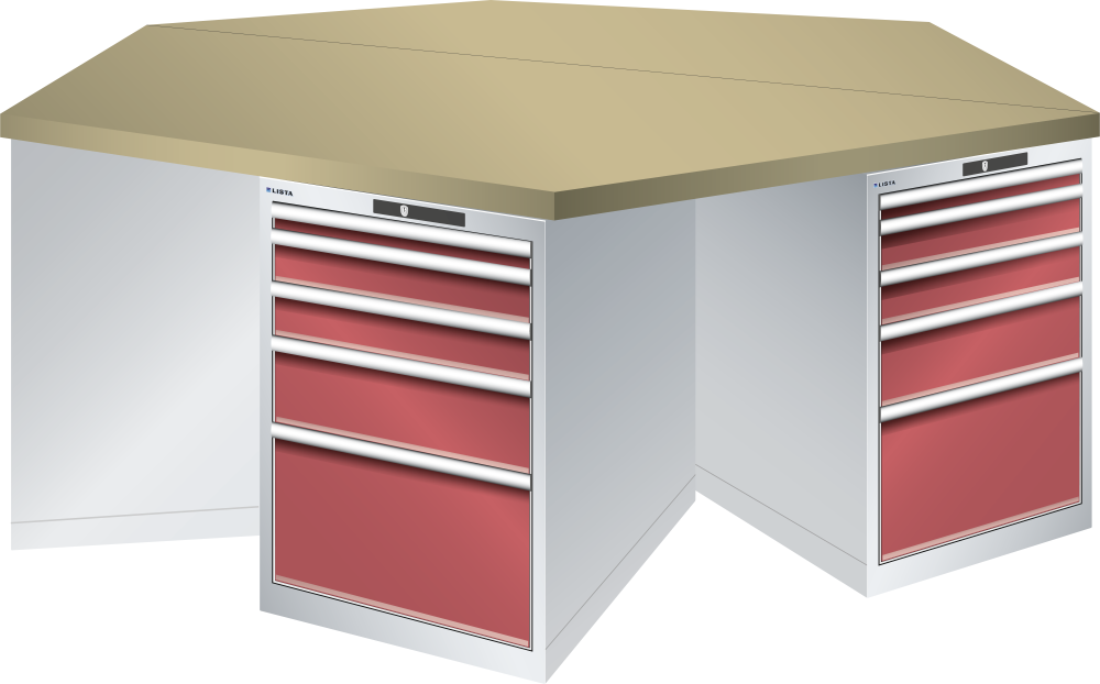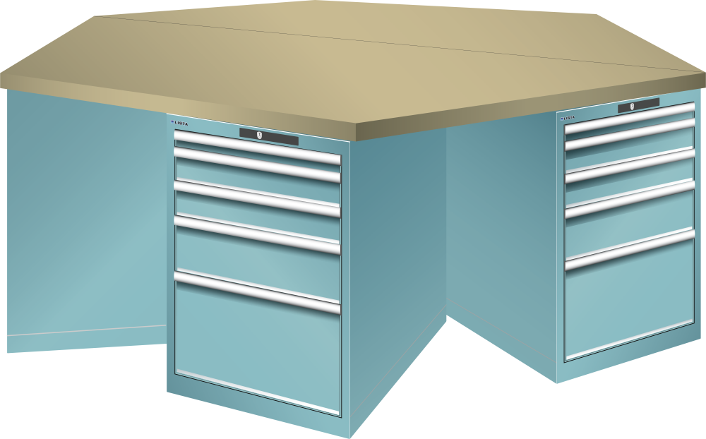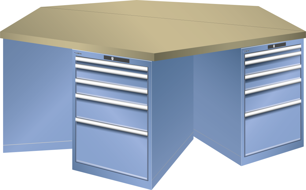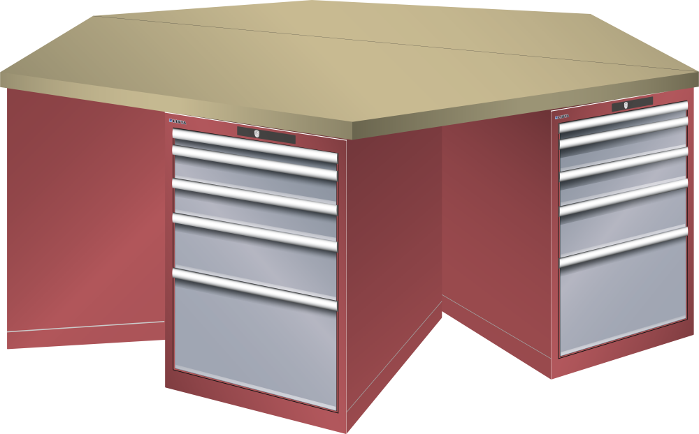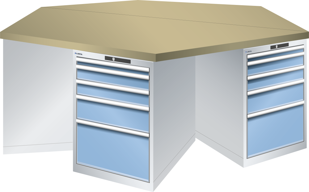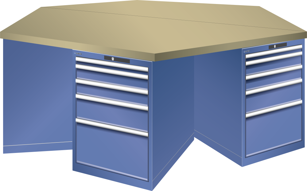 Bancho da lavoro esagonali 27x36E (LxPxA) 2500x2165x840mm 6 x 5 cassetti (1x50/2x100/1x150/1x300) 75kg Multiplex CODE Lock Blu luce RAL 5012