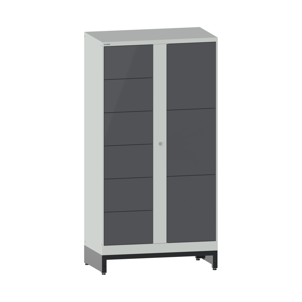 E-Multicabinet con ante in lamiera piena (LxPxA) 1000x580x1970mm 1x6/1x3 scomparti senza cavo di alimentazione Grigio luce RAL 7035 / Grigio metallico NCS S 6502-B