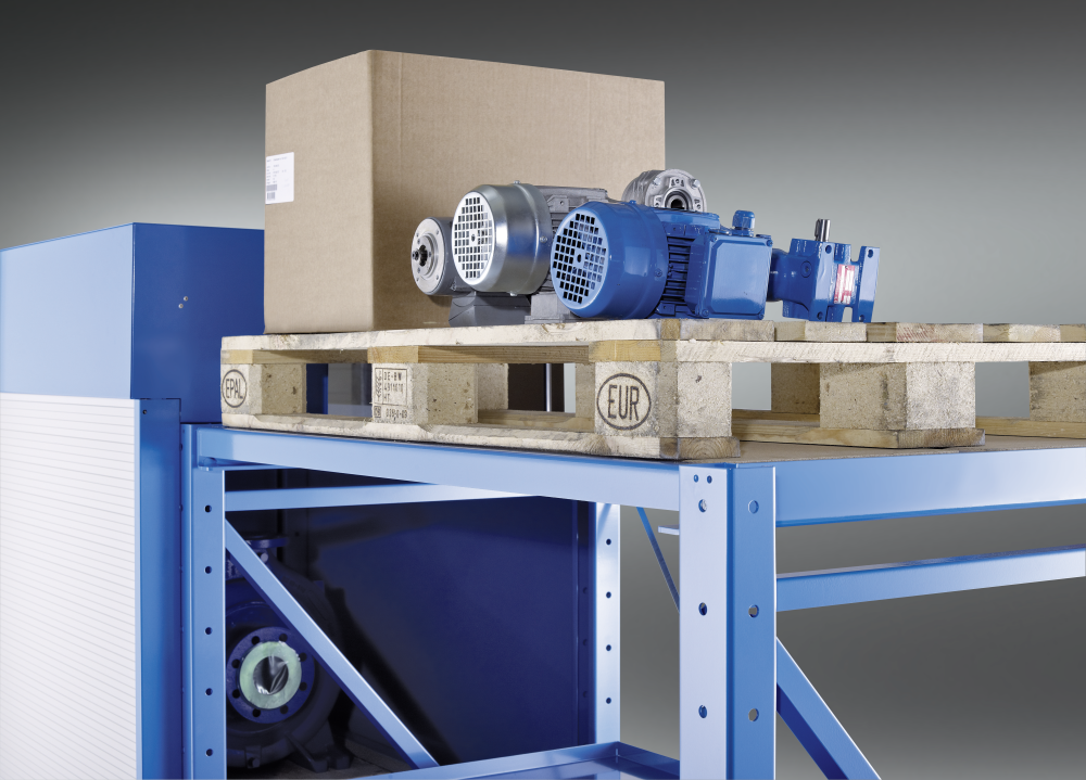 Scaffali con ripiani estraibili per merci pesanti, smontati: Con 2 telai estraibili ad estrazione semplice (estrazione semplice, 65% estrazione) e 1 telaio fisso come ripiano superiore, ciascuno comprensivo di inserti in truciolato pressato, spessore 40 mm. Attrezzabili a piacere con pareti laterali, ulteriori telai estraibili e fissi, coperture, ante scorrevoli, tapparelle e paraurti per montante. Campata base inclusi 1 coppia diagonali per la stabilizzazione longitudinale, 2 telai di sostegno, ancoraggio al suolo e set di piastre di livellamento. Campata aggiuntiva inclusi 1 telaio di sostegno, ancoraggio al suolo e set di piastre di livellamento. Passo fori nei montanti ogni 100 mm. Versione: lamiera d’acciaio. Colore: come da tabella colori. Nota: a partire dalla terza campata aggiuntiva è necessaria un’ulteriore coppia diagonali (cfr. pag. 242).