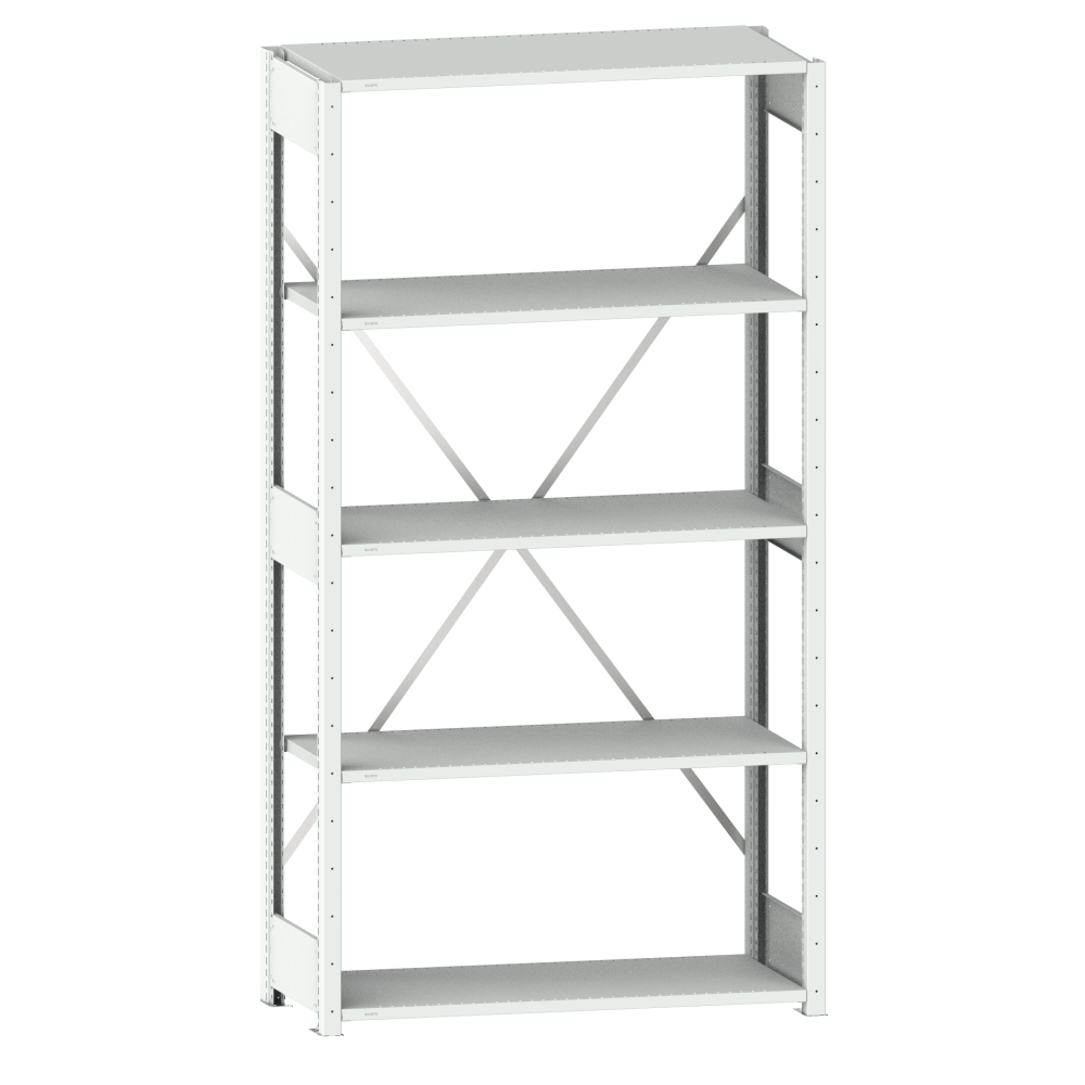 Ripiani lisci o fessurati, carico scomparto max. 80, 160, 220, 280 e 400 kg: supporti inclusi. Spessore ripiano 25 mm. Versione: lamiera d'acciaio. Colore: come da carta colori o zincata.